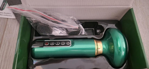El paquete incluye un masajeador de ventosas con calor, un cable de carga USB, 3 filtros de repuesto, el manual de instrucciones y su caja protectora, todo listo para que puedas comenzar tu rutina de masaje desde el primer día.